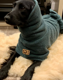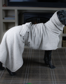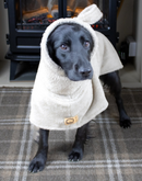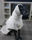 Handmade using a double thickness of soft cotton towelling this luxurious robe is beautifully cosy and absorbent and incorporates a built-in snood for all over drying. Perfect for use after wet winter walkies, bathing, swimming or hydrotherapy.