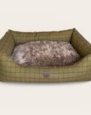The ultimate dog bed! This 100% wool filled bed features a removable inner mattress, encased in a snuggly, thick outer padded cushion to keep draughts at bay. Handmade in Lincolnshire, the Wool ‘N’ Woofers Snuggle beds are cosy 100% wool filled beds featuring a range of beautiful country style fabrics, also available with an optional genuine sheepskin topper to truly spoil your furry friend!